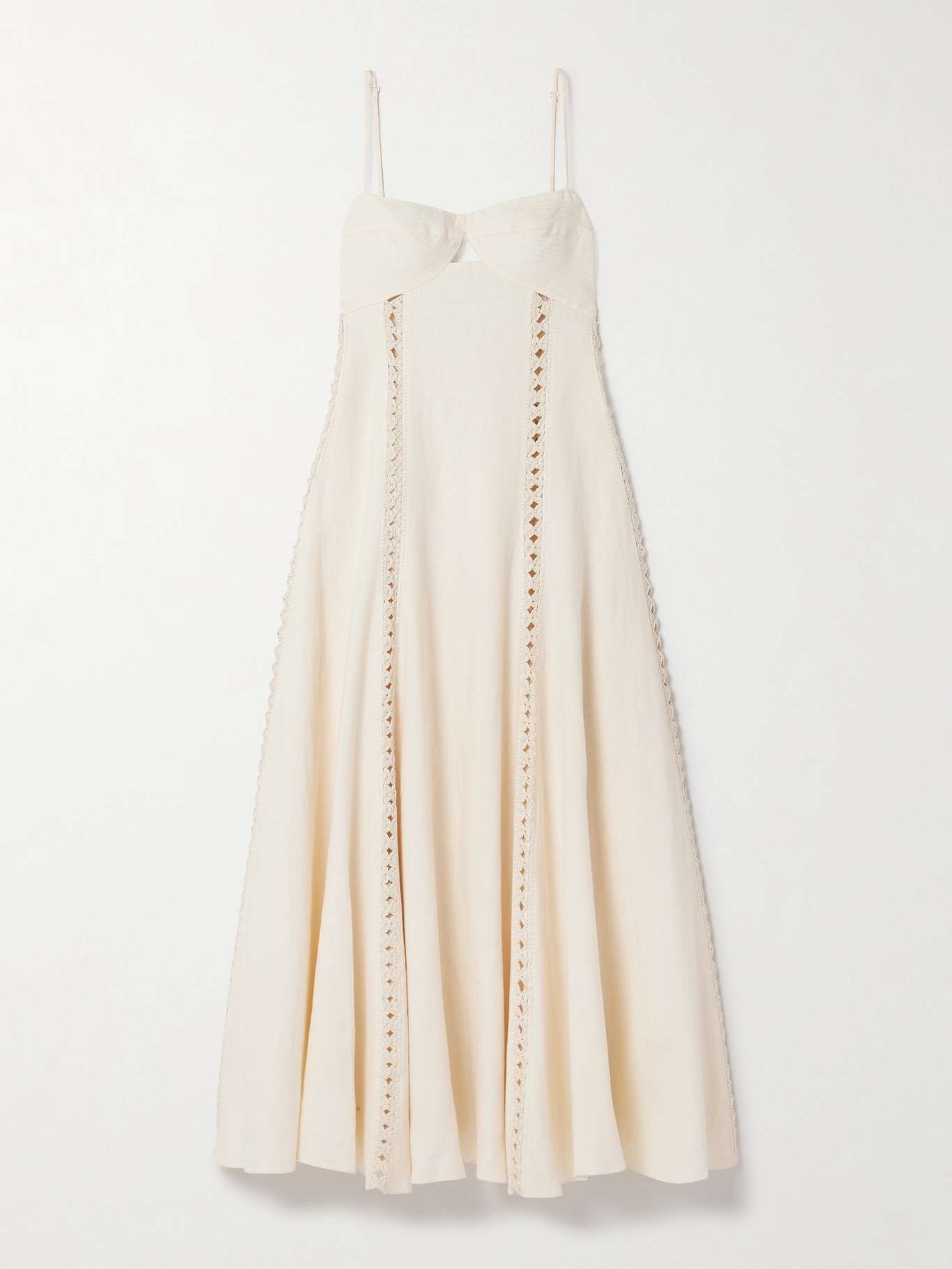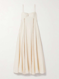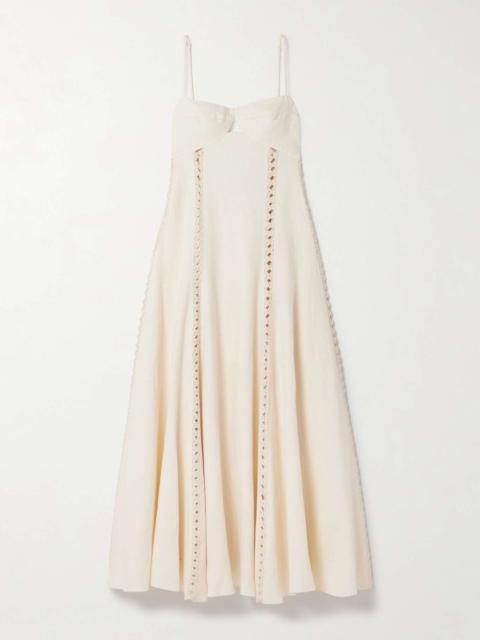 Catamaran Ventures crochet-trimmed embroidered linen midi dress Ecru