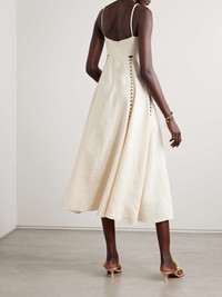 EDITORS'NOTES From the intricate crochet trims to the subtle embroidery, Johanna Ortiz's 'Catamaran Ventures' dress is designed with careful attention to the details. It's made from breathable linen and has a full, floaty skirt and cutout bust. Adjust the straps to customize the fit. SIZE & FIT Model measurements: - Fits true to size, take your normal size - Designed to be fitted at the bust and waist, loose at the hip - Fully adjustable shoulder straps - Lightweight, non-stretchy fabric - Model is 183cm/ 6'0" and is wearing a US 2 - Bust: 76cm/ 30" - Waist: 64cm/ 25" - Hip: 95cm/ 37.5" DETAILS & CARE - Ecru linen and crochet - Concealed snap and zip fastening at back - 100% linen