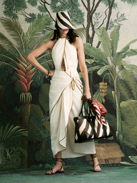 Size and Fit: - True to size. Please refer to our size chart for detailed guidance. Product Details: Closure: Tie At Back And Back Zipper Composition: 87% Cotton, 10% Leather, 3% Elastane Fabrication: Cotton Color: Ecru/Camel Made in Colombia Dimensions: Length 37.40''