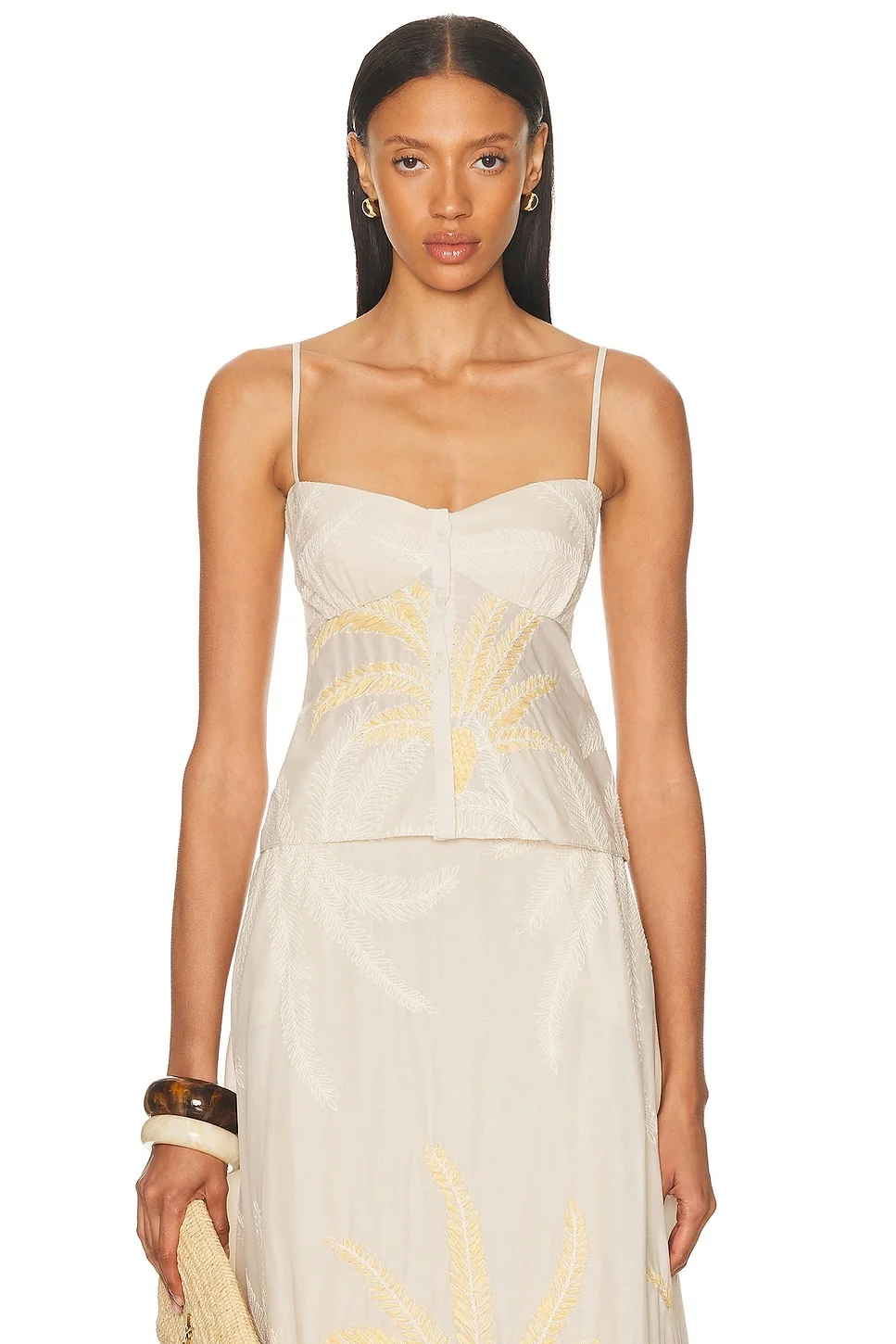 Details - 100% cotton - Dry clean only - Front button closure - Adjustable shoulder straps - Wrap around embroidered palm tree design - Lightweight linen fabric - Item not sold as a set - Made in Colombia - Our Style No. JOTZ-WS144 - Manufacturer Style No. PT02929
