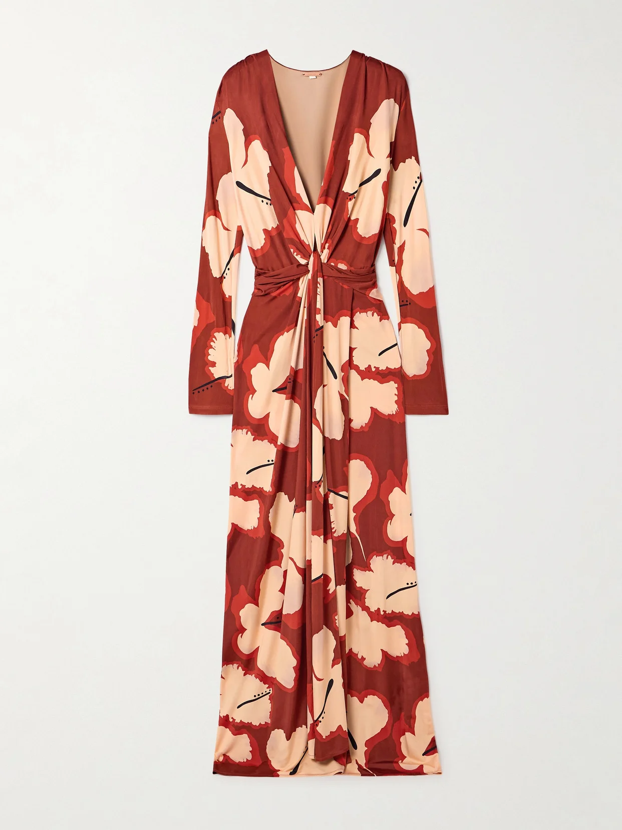 Coral Marino Draped Printed Stretch-jersey Maxi Dress