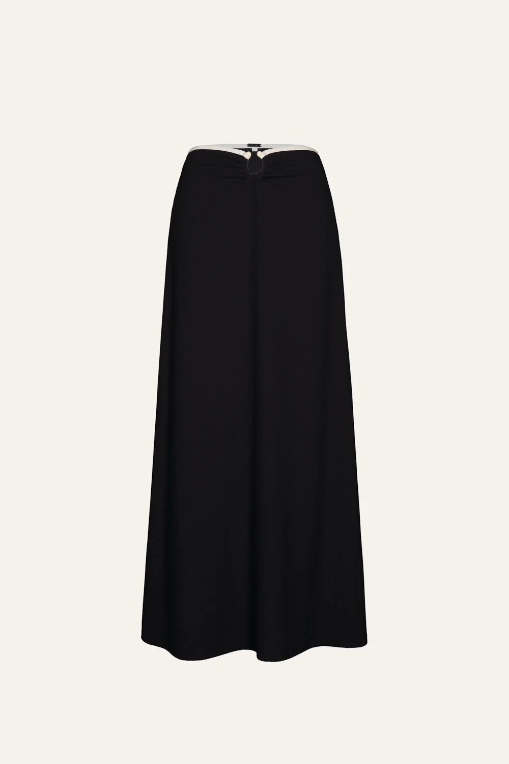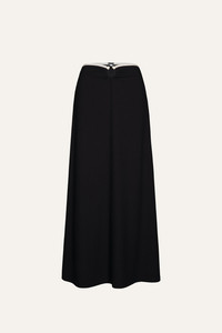 A signature Johanna Ortiz midi skirt with a sleek, flowing silhouette. Low-rise, A-line silhouette. Effortlessly pairs with matching one-piece swimsuits, bikini tops, and shirts for a total Johanna Ortiz resort look. Size and Fit: - Low-rise, A-line silhouette. - Please refer to our size chart for detailed guidance. Product Details: Closure: Slip On Composition: 88% Recycled Polyamide, 12% Elastane Fabrication: Crinkle Lycra Color: Black/Ecru Made in Colombia Dimensions: Length 36.2''