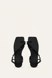 Strappy flats reimagined with glossy acrylic beads and sculptural concho medallions. Infused with a festive spirit, they’re designed for everyday wear. Product Details: Closure: Buckle Regulation Composition: 100% Goat Leather Fabrication: Leather Sandal Color: Iconic Black Made in Colombia Dimensions: Heel Height: 0.39''