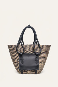 Crafted from natural Iraca palm fiber sourced from the skilled weavers of Sandona, Narino, this bag embodies artisanal craftsmanship at its finest. The brown leather contrasts beautifully with the sand-colored Iraca, creating a striking and refined accessory. The handcrafted quality reflects the tradition and heritage of Colombian artisans. Product Details: Closure: Open Top With Tie Strap Closure Composition: 80% Natural Fiber (Iraca Palm), 20% Cow Leather Fabrication: Iraca Bag With Leather Handle Color: Iconic Black/Ecru Made in Colombia Dimensions: Length 18.90'', Width 11.02'', Height 11.81'', Drop 6.30''