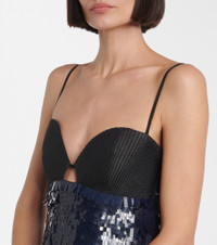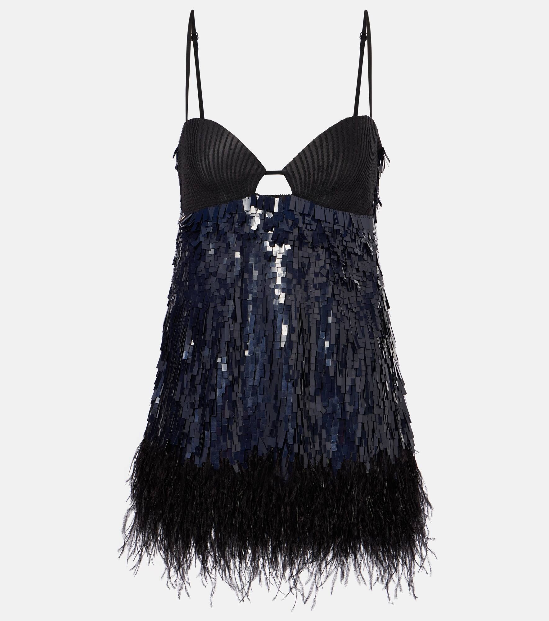 Feather-trimmed sequined minidress