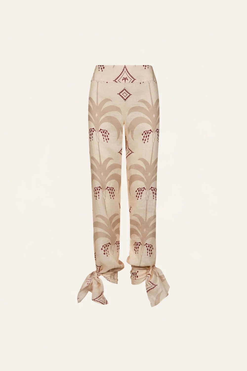 Straight-leg pants cut in light linen, in ecru and sand with a JO print. Defined by tie details at the hem for a distinctive finish. Style them with the matching top for a coordinated look. Size and Fit: True to size. High-rise, straight fit with adjustable ties at the ankles. Please refer to our size chart for detailed guidance. Product Details: Closure: Slip On Composition: 100% Linen Fabrication: Light Linen Color: Ecru/Sand Made in Colombia Dimensions: Length 39.37''