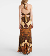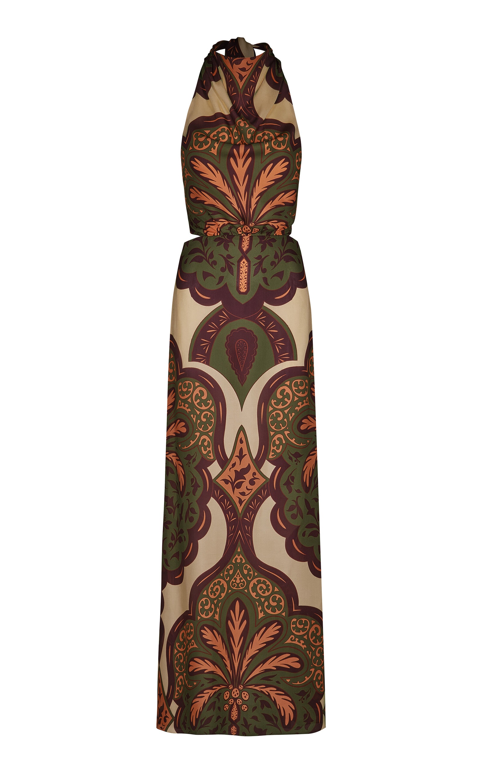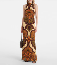 PRODUCT DETAILS - Sleeveless, high neck, slim fit, low waist cutouts, maxi hem - Concealed zip fastening along back - Unlined - Composition: 100% Silk - Color: multi - Dry clean only - Spring/Summer '25