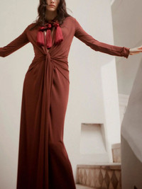 Finding Yourself dress Highlights - Chocolate brown - V-neck - Detachable adjustable waist strap - Long sleeves Imported Composition Viscose 96%, Elastane 4% SIZE & FIT Measurement CHEST 29.92 in(76 cm) SLEEVE LENGTH 22.83 in(58 cm) HIPS 33.07 in(84 cm) LENGTH 51.18 in(130 cm) WAIST 22.83 in(58 cm)