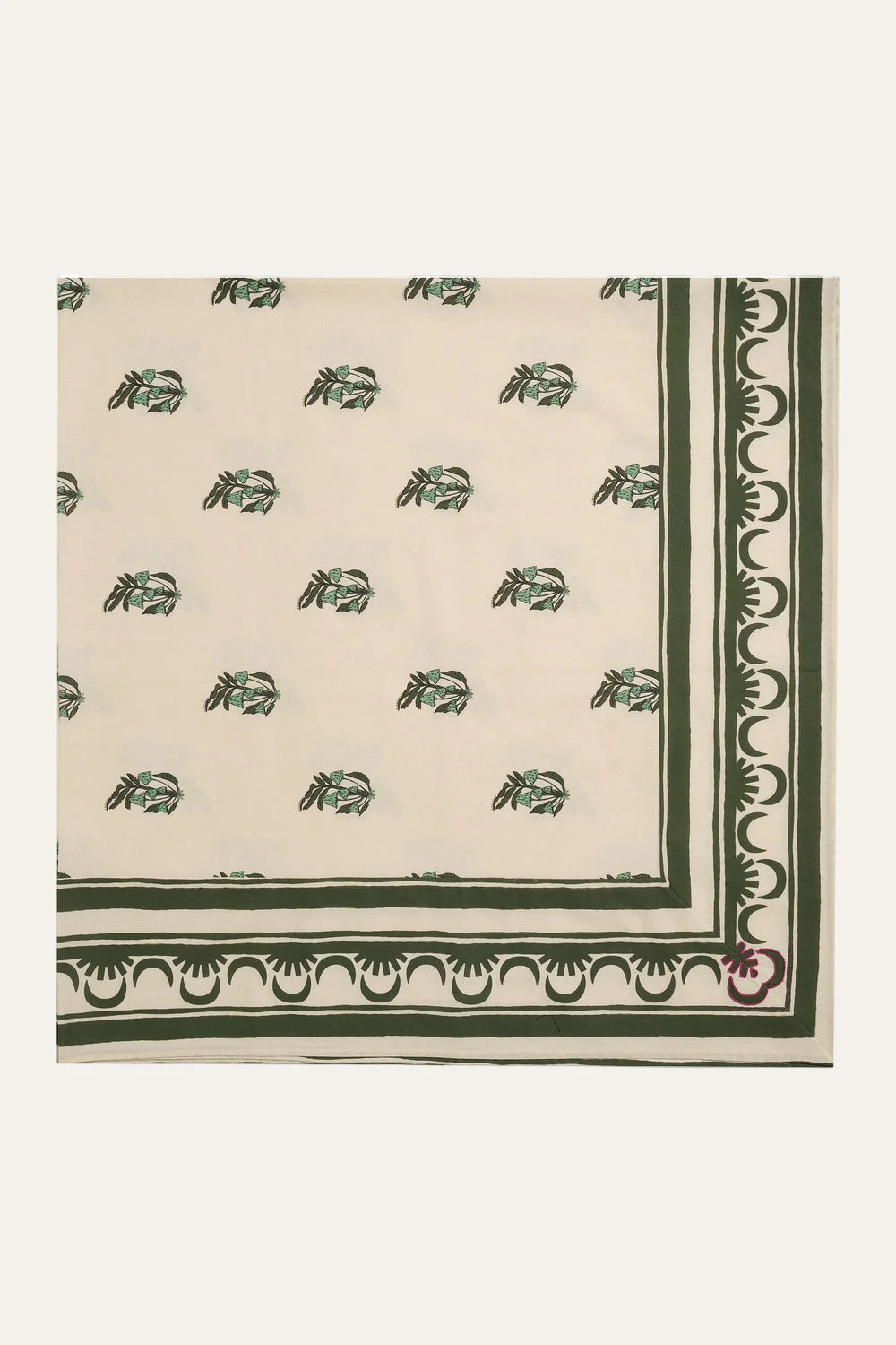 Elevate your dining with a durable cotton tablecloth featuring charming mushroom block prints in three shades, inspired by JO's archival designs. Crafted from sustainable fabrics sourced from traceable mills, it brings JO Home's distinctive elegance to any occasion. Product Details: Composition: 100% Cotton Fabrication: Cotton Color: Forest Green/Ecru Made in Colombia