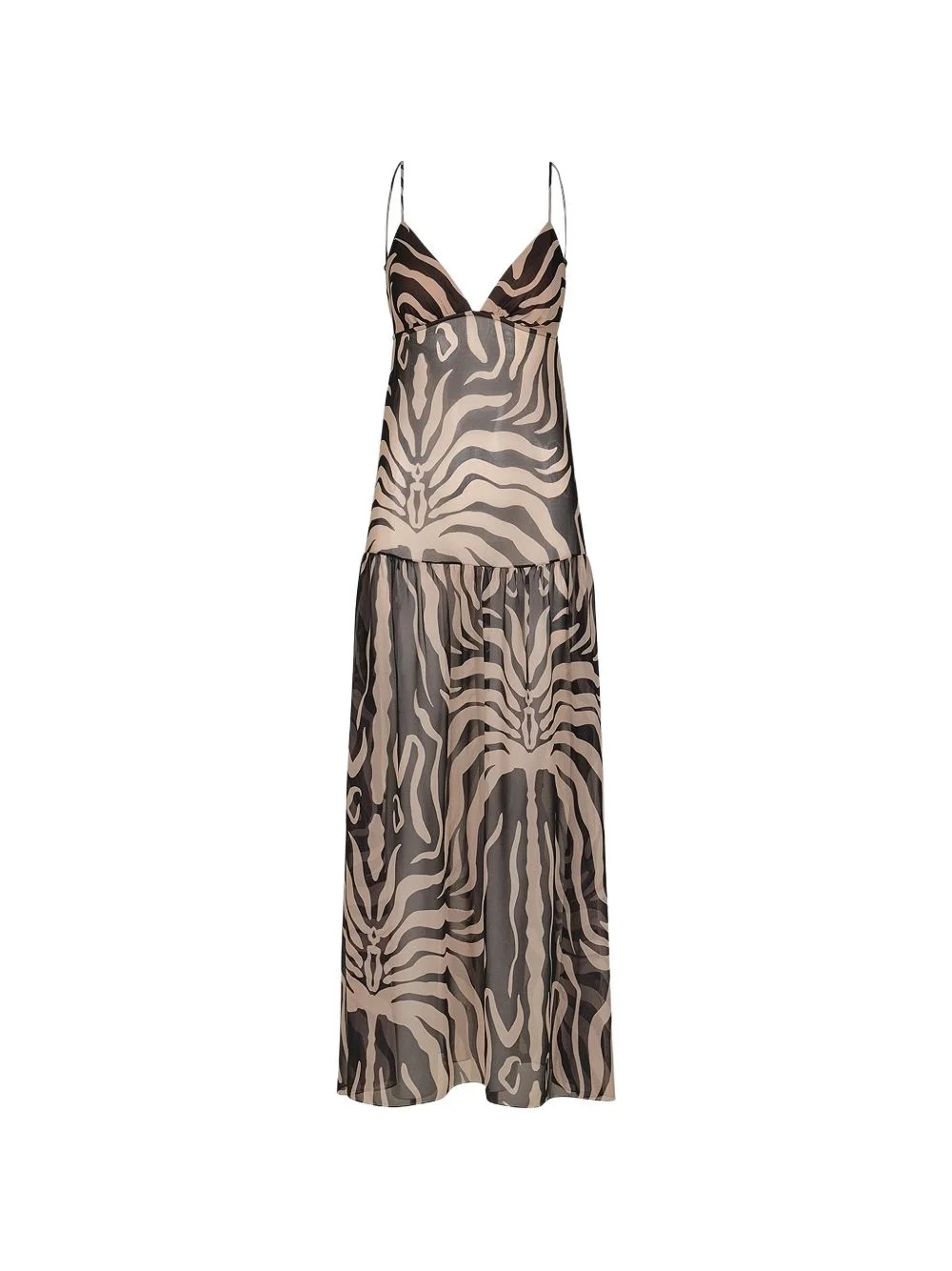 Georgette zebra-print maxi dress Highlights - Black and beige - Zebra print - Thin straps - V-neck - Tiered skirt Imported Composition Recycled Polyester 56%, Polyester 44% Washing instructions Read Manufacturer Guidelines