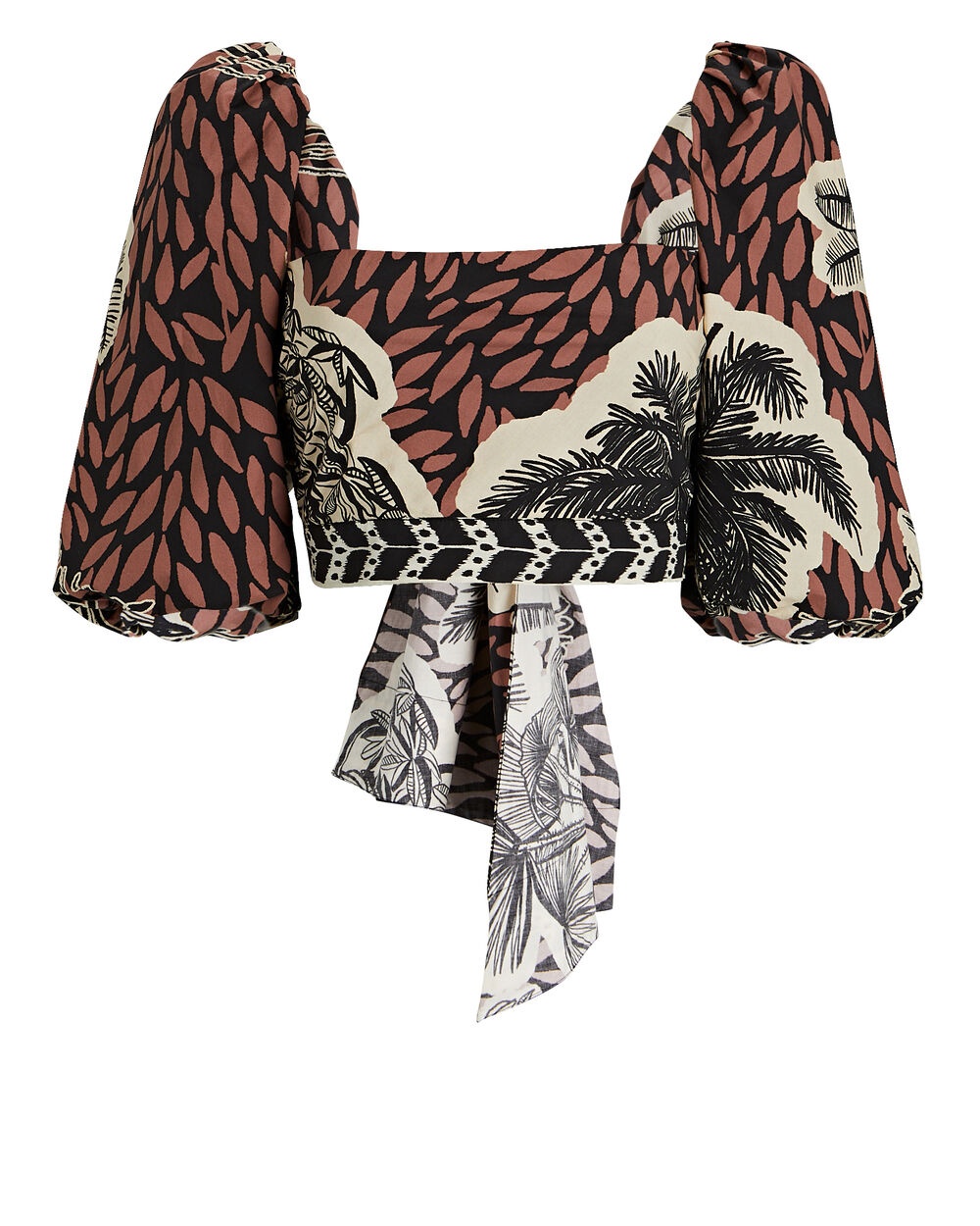 Flirtatious for the fall season, Johanna Ortiz's Paraiso top allures with puffed sleeves and earth-toned cotton poplin. It's finished with an open back profile and oversized tie that falls slightly below the waist. Style yours with white wide-leg pants. Style Number: PT00992 - Fabric: 100% cotton - Back tie closure - Dry clean - Imported - Length from shoulder to hem: 14.5" - Model is wearing size US 0 - Model height 5'10", bust 33", waist 24.5”, hips 34”