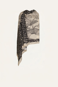 JO shawls are versatile collectibles designed to transform effortlessly into a skirt, top, scarf, shawl, belt, bag, or headpiece. Johanna invites you to explore endless styling possibilities and create your own signature look through the art of knotting. Product Details: Closure: Wrap Around Composition: 65% Viscose, 35% Silk Fabrication: Viscose, Silk Shawl Color: Ecru/Black Made in Colombia Dimensions: Width 53.15'', Length 78.74''