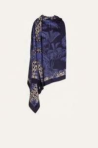 JO shawls are versatile collectibles designed to transform effortlessly into a skirt, top, scarf, shawl, belt, bag, or headpiece. Johanna invites you to explore endless styling possibilities and create your own signature look through the art of knotting. Product Details: Closure: Wrap Around Composition: 65% Viscose, 35% Silk Fabrication: Viscose, Silk Shawl Color: Navy/Ecru/Middle Blue Made in Colombia Dimensions: Width 53.15'', Length 78.74''
