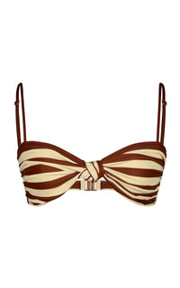 The Colombian talent harnesses her expertise of barefoot glamour—and her relationships with various artisanal communities—to create a richly woven, patterned display of chic occasion wear and accessories that transcend seasons and hemispheres. The 'Healing Tools' top has bandeau silhouette that gathers into a ruched knot detail and adjustable straps. Complete the set and pair with the matching bottoms. PRODUCT DETAILS - Pre-Fall '24 - Tie fastening - Composition: 78% Polyamide, 22% Elastane - Hand wash - Made in Colombia SIZE & FIT - Our model is wearing a size Small - Model is 5'10" with a 34" bust, 24" waist, and 35" hip - This item fits true to size, we suggest taking your usual size - Designed for moderate coverage