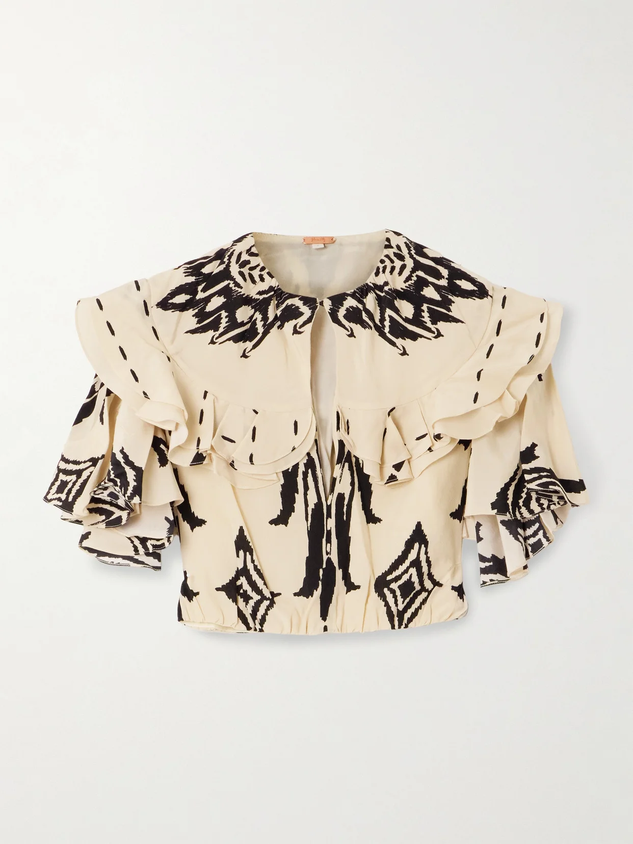 Influencial Tribes Cropped Ruffled Printed Silk-chiffon Top