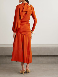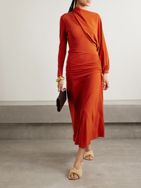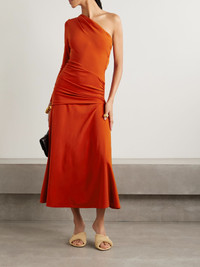 Johanna Ortiz's 'Inspiring Hearts' dress has an elegant one-sleeve design and comes with an additional one so you can customize your look. Locally made in Colombia from smooth stretch-jersey, it's gently gathered at the waist for textural contrast. The warm 'Paprika' shade is right in line with the season's desert tones trend. Responsible Craftsmanship. This product promotes artisanal skills and a brand that invests in communities and adheres to fair-trade principles. Find out more about our NET SUSTAIN criteria here. Size & Fit - Fits true to size, take your normal size - Designed for a slim fit - Detachable sleeve - Mid-weight, stretchy fabric - Model is 180cm/ 5'11" and is wearing a US 2 Details & Care - Tomato-red stretch-jersey - Slips on - 80% polyester, 20% elastane - Green dry clean - Designer color: Paprika