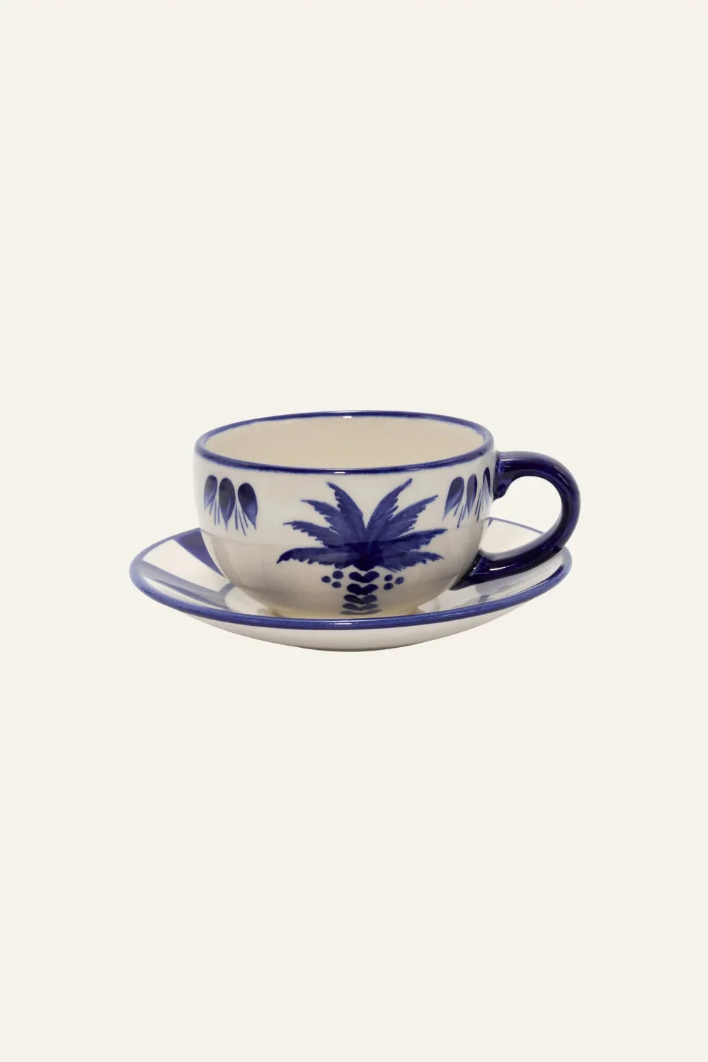 Johanna Ortiz's 'Casa Collection '24' features ceramic dinnerware crafted from special clay in Carmen de Viboral, Colombia. Hand-painted by artisans without stencils, each piece reflects the town's rich heritage. The collection includes dinner plates, salad plates, mugs, and a new cup and saucer set, offering endless mix-and-match possibilities for dynamic tablescapes. Product Details: Composition: 100% Ceramics Fabrication: Ceramics Color: Deep Navy Made in: Colombia Dimensions: Cup: Diameter 4.06'', Height 2.48'' | Plate: Diameter 5.91''