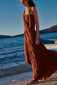 A classic Johanna Ortiz piece, now available in Mocca. Designed for versatile styling, it can be worn as an ankle-length skirt or dress, offering effortless elegance with its ribbed texture and soft linen blend. Size and Fit: - True to size. - High-rise fit when worn as a skirt. - Please refer to our size chart for detailed guidance. Product Details: Closure: Slip On Composition: 75% Organic Linen, 16% Polyester, 9% Cotton Fabrication: Rib Linen Color: Paprika Made in Colombia Dimensions: Length 37.4''