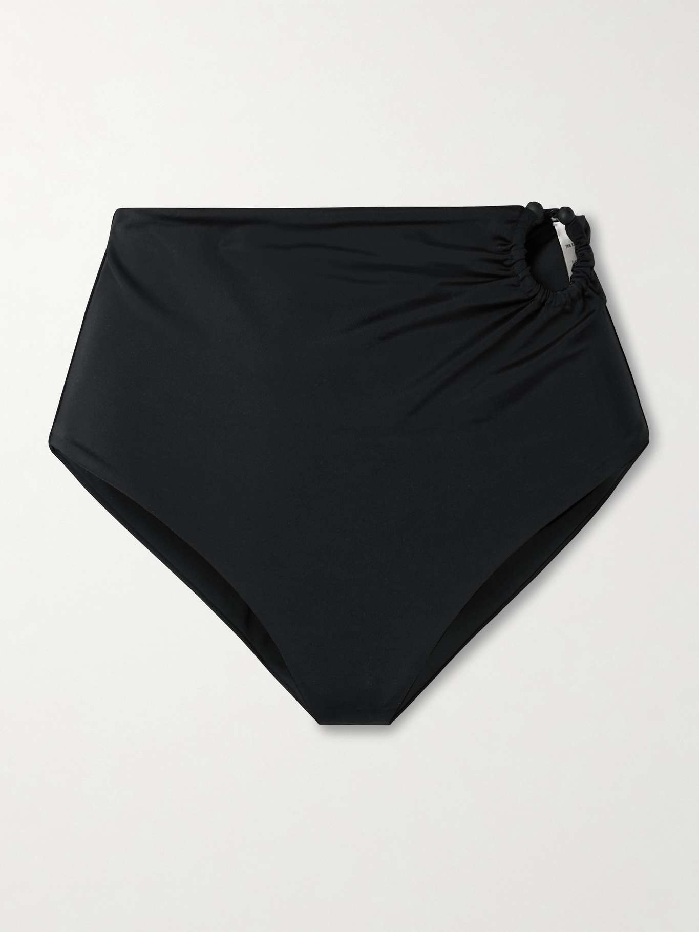 EDITORS'NOTES Johanna Ortiz's 'Marinera' bikini briefs are made from recycled fabric that would've otherwise found its way to a landfill. They have high-cut legs and a tonal ring embellishment at the waist. Layer a pareo on top before heading to the pool. Lower-Impact Materials. This product is made using at least 50% lower-impact materials or ingredients. Find out more about our NET SUSTAIN criteria here. SIZE & FIT Model measurements: - Fits true to size, take your normal size - High-rise briefs with medium coverage - Model is 175cm/ 5'9" and is wearing a size XSmall - Bust: 75cm/ 29.5" - Waist: 63cm/ 25" - Hip: 91cm/ 36" DETAILS & CARE - Black stretch recycled-polyamide - Pull on - 78% recycled polyamide, 22% elastane - Green dry clean - Lotion, sunscreen, oil and chlorine can cause discoloration of this item; this is not a manufacturing defect. Please follow care instructions to keep your swimwear in the best condition