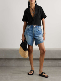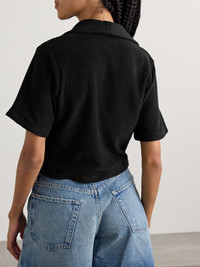 Johanna Ortiz's ‘Misty Hem’ shirt is cut for a boxy fit from cotton-terry and features a deep V-neckline. Complement the cropped hem with high-rise pants or shorts. Size & Fit - Fits true to size, take your normal size - Intended for a boxy fit, cut to be worn loose - Cropped length - Lightweight, slightly stretchy fabric - Model is 177cm/ 5'10" and is wearing a size Small Details & Care - Black cotton-terry - Slips on - 100% cotton - Dry clean