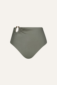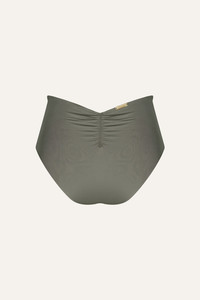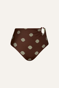 A high-rise bikini bottom with ruched detailing and a signature bead accent. A classic Johanna Ortiz silhouette, designed for mix-and-match styling with coordinating bikini tops. Fully reversible for versatile wear. Size and Fit: - True to size. - High-rise. - Please refer to our size chart for detailed guidance. Product Details: Closure: Slip On Composition: 78% Recycled Polyamide, 22% Elastane Fabrication: Printed Lycra Color: Dark Chocolate/Light Green Made in Colombia