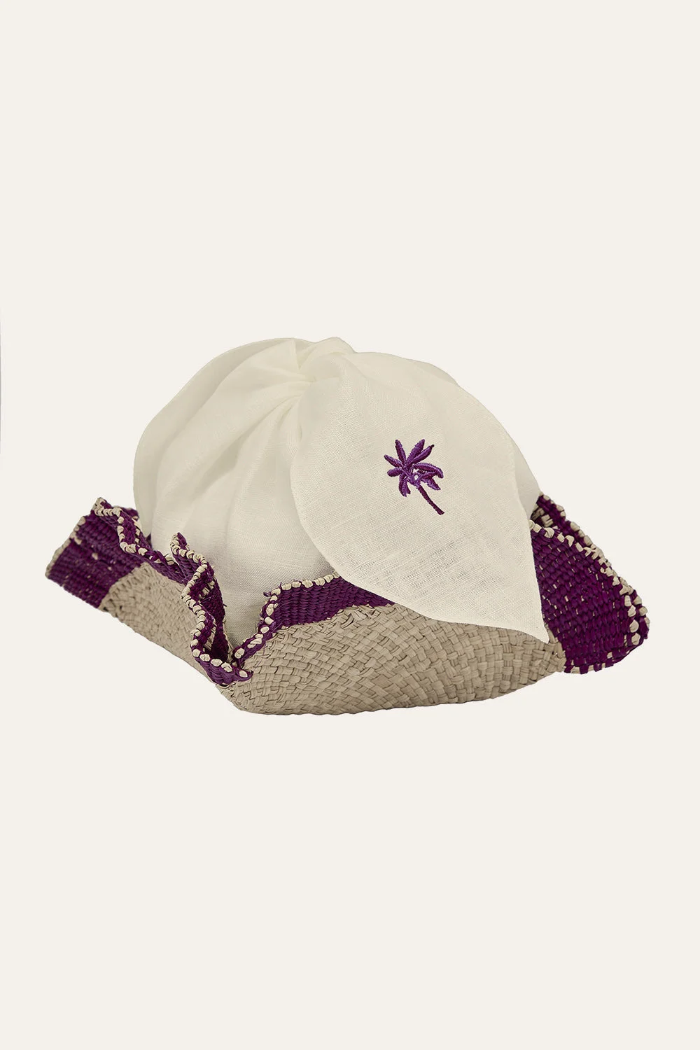 This set of four mini bread baskets, complete with delicately embroidered cloths, elevates your bread display with charm and elegance. Created in collaboration with Las Juanas in Sandona, Narino, these iraca palm fiber pieces feature carry-over designs in fresh colorways and a unique mushroom-like ruffle border. Product Details: It comes with an Embroidered Cloth Basket Composition: Cloth Basket: 98% Linen, 2% Cotton, Natural Fiber Basket: 100% Iraca Palm Fabrication: Linen and Natural Fiber/Iraca Palm Color: Acai Set of 4 Made in Colombia Dimensions: Length 6.30'', Width 6.30'', Height 3.15''