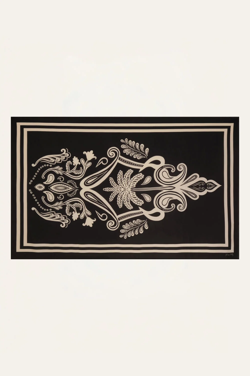 JO shawls are versatile collectibles designed to transform effortlessly into a skirt, top, scarf, shawl, belt, bag, or headpiece. Johanna invites you to explore endless styling possibilities and create your own signature look through the art of knotting. Product Details: Closure: Wrap Around Composition: 65% Viscose, 35% Silk Fabrication: Viscose, Silk Shawl Color: Black/Ecru Made in Colombia Dimensions: Width 53.15'', Length 78.74''