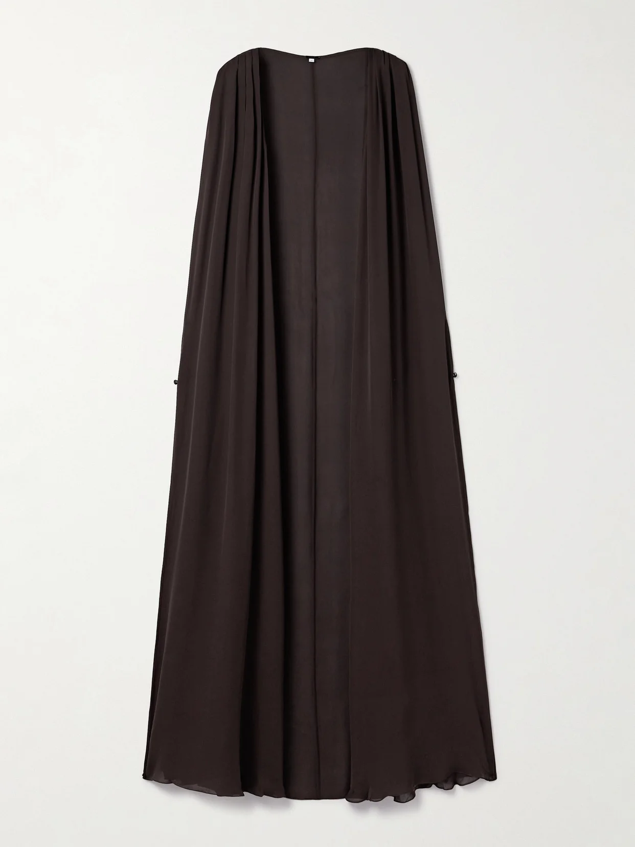 Johanna Ortiz's 'New Destiny' cape is designed to be worn with the matching maxi dress, adding plenty of drama, elegance and fluid movement. It's cut from airy silk-georgette that's pleated along the shoulders, ensuring it drapes beautifully through the floor-grazing hem.