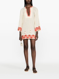 Ocean Clain linen tunic dress Inspired by its Colombian roots, Johanna Ortiz adorns this dress with ecru and coral hues and a contrasting embroidered motif. The brand's penchant for bold design is showcased on top of the linen and matches the tunic style of this minidress. Highlights - Ecru/coral red - Linen blend - Embroidered motif - Contrasting border - Tassel detail - Drawstring round neck - Keyhole neck - Three-quarter length wide sleeves - Straight hem - Thigh-length Imported Composition Linen/Flax 70%, Polyester 30% SIZE & FIT Model measurements Height 5 ft 11 in(1.8 m) Bust/Chest 34.25 in(87 cm) Hips 35.82 in(91 cm) Waist 24.8 in(63 cm) FittingInformation Designed for a relaxed fit, this piece allows for comfort and movement when worn Made from a lightweight non-stretch fabric This piece fits true to size – take your usual size Washing instructions Dry Clean Only