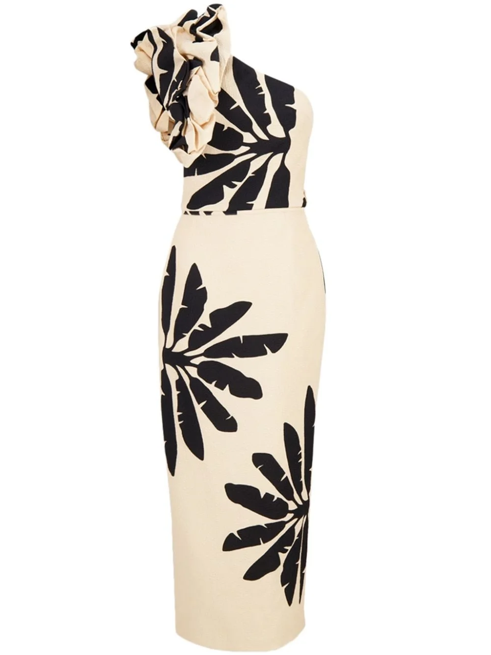 Oneshoulder Coyote Dance silk midi dress Highlights - Ecru/black - Silk - Botanical print - Concealed rear zip fastening - Asymmetric design - One-shoulder - Floral applique - Fitted waistline - Rear slit - Mid-length Imported Composition Silk 100%