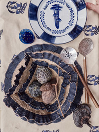 Introducing our set of two placemats, made entirely from natural iraca palm fibers. These exquisite pieces were skillfully crafted in collaboration with Las Juanas in Sandona, Narino, demonstrating the exceptional talent required to transform the iraca palm fibers into stunning woven works of art. With a range of carry-over designs from previous collections, now available in fresh new colors, these placemats are a stylish and elegant addition to any dining table. Product Details: Composition: 100% Natural Fiber/Iraca Palm Fabrication: Natural Fiber/Iraca Palm Color: Blue Set of 2 Made in Colombia Dimensions: Diameter 17.32''