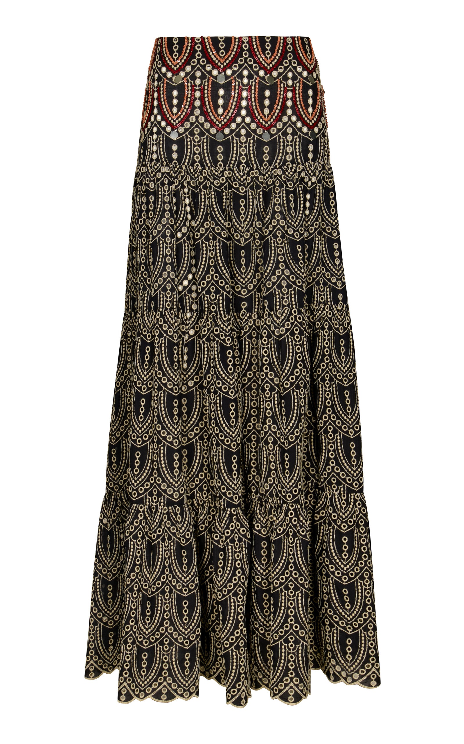 Palm Rhythm Embroidered Maxi Skirt black/white