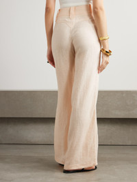Johanna Ortiz's pants have been locally made in Colombia by skilled craftspeople from breathable organic linen. Designed for an elongating effect, they sit high on the waist and have wide legs. The belt loops and curved back seams evoke Western styles. Responsible Craftsmanship. This product promotes artisanal skills and a brand that invests in communities and adheres to fair-trade principles. Find out more about our NET SUSTAIN criteria here. Size & Fit - Fits true to size, take your normal size - High-rise, cut for a wide-leg fit - Lightweight, non-stretchy fabric - Model is 175cm/ 5'9" and is wearing a US 2 Model measurements: - Bust: 78cm/ 31" - Waist: 62cm/ 24.5" - Hip: 92cm/ 36" Details & Care - Ecru organic linen - Concealed hook, button and zip fastening at front - 100% organic linen - Dry clean