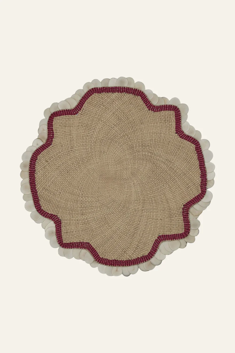 Johanna Ortiz's "Casa Collection '24" features exquisite placemats crafted by women artisans from Sandona, Colombia, using iraca palm fiber and adorned with tagua seed accents. These unique pieces bring tropical elegance and artistry to any table setting. Product Details: Composition: 85% Natural Fiber/Iraca Palm, 15% Natural Seed/Tagua Fabrication: Natural Fiber/Iraca Palm And Tagua Placemat Color: Uncu Red Set of 2 Made in Colombia Dimensions: Diameter 17.72''