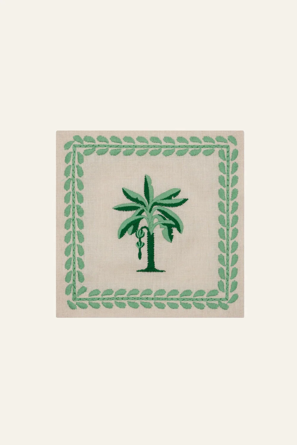 The "Casa Collection '24" features tablecloths and napkins in Navy, Red, and Aqua, embodying Johanna Ortiz's tropical chic style. Perfect for hosting, these cocktail napkins bring elegance and vibrant tropical spirit to every sip, blending functionality with enchanting design. Product Details: Composition: 85% Linen, 15% Cotton Fabrication: Linen Color: Antique Aqua Set of 4 Made in Colombia Dimensions: Length 5.91'', Width 5.91''