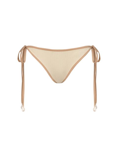 PRODUCT DETAILS - Slim fit, shoulder straps, ties at back - Tie fastening - Composition: 88% Polyamide, 12% Elastane - Color: brown - Hand wash - Resort '25