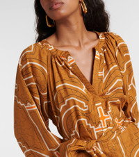 Printed balloon-sleeve cotton maxi dress