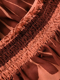 Rapsodia Del RÃo beach trousers Highlights - Terracotta brown - Recycled polyester - Semi-sheer construction - Geometric-pattern print - Elasticated waistband - Straight leg - This item is made from at least 50% recycled or upcycled materials. for recycled synthetic clothing products, we highly recommend using a microfibre-catching washing bag to ensure that no microplastics that can pollute water are released in the process. - We've partnered with good on you â an independent agency that rates how brands perform in relation to their impact on the planet, people and animals, with a multi-criteria rating simplified to a five points scale. in order to be awarded our conscious label, larger brands need to score a minimum of four out of five ('good'), while smaller brands must score at least three out of five ('it's a start'). - This item comes from a brand rated three out of five ('it's a start') by good on you at the time it was added on farfetch. please note, this is a brand-level rating and does not guarantee that this product is made with conscious materials. - Learn more about what makes a product conscious on our conscious criteria page Imported Composition Recycled Polyester 100%