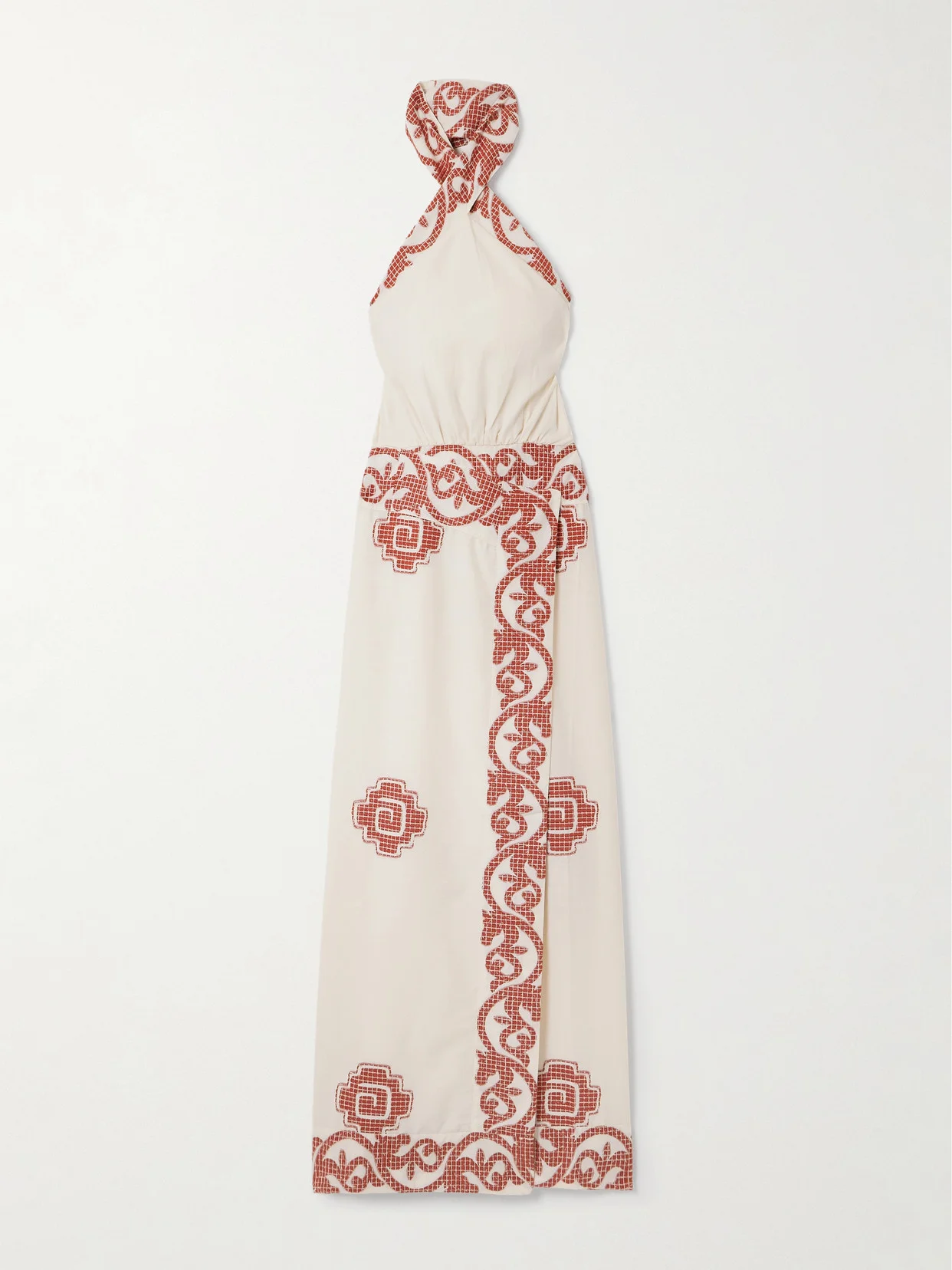 Reinventing Embroidered Cotton Halterneck Maxi Dress