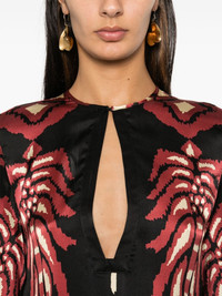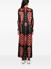 Relics Of Wisdom maxi dress Highlights - Black/red/ecru - Silk - Satin weave - Front hook and eye fastening - Palm tree print - Geometric print - Split neck - Long sleeves - Buttoned cuffs - Unlined - Straight hem - Long length - We've partnered with good on you — an independent agency that rates how brands perform in relation to their impact on the planet, people and animals, with a multi-criteria rating simplified to a five points scale. in order to be awarded our conscious label, larger brands need to score a minimum of four out of five ('good'), while smaller brands must score at least three out of five ('it's a start'). - This item comes from a brand rated three out of five ('it's a start') by good on you at the time it was added on farfetch. please note, this is a brand-level rating and does not guarantee that this product is made with conscious materials. - Learn more about what makes a product conscious on our conscious criteria page Imported Composition Silk 100% SIZE & FIT Model measurements Height 5 ft 10 in(1.77 m) Bust/Chest 30.7 in(78 cm) Hips 35.03 in(89 cm) Waist 23.62 in(60 cm) FittingInformation Designed for a slim fit that sits just away from the body offering a close yet comfortable fit Made from a midweight non-stretch fabric