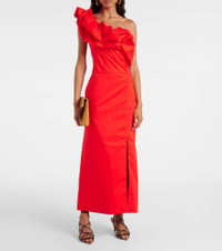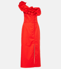 Ruffled one-shoulder poplin gown