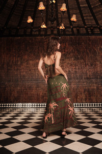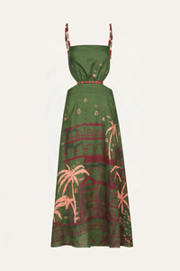 An ankle-length dress crafted from embroidered linen, detailed with embroidered tassels that add movement and texture. Featuring a structured bodice with subtle cutouts and a flowing skirt, it’s a refined option for daytime gatherings or warm-weather occasions. Size and Fit: True to size. Ankle length. Please refer to our size chart for detailed guidance. Product Details: Closure: Tie At Back And Back Zipper Composition: 100% Linen Fabrication: Linen Color: Green Made in Colombia