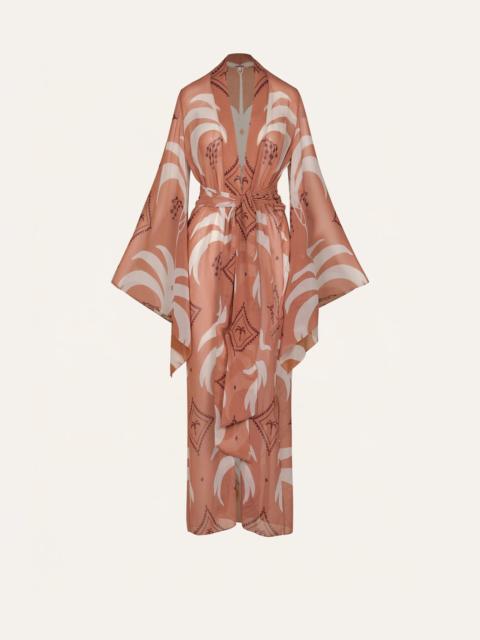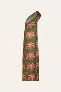 An asymmetric linen ankle-length dress defined by a flowing silhouette and waist tie fastening. Designed to balance ease with structure, it’s perfect for warm-weather dressing. Comes with a pareo for added versatility. Size and Fit: True to size. Please refer to our size chart for detailed guidance. Product Details: It Comes With Removable Skirt Closure: Wrap Around Composition: 100% Linen Fabrication: Light Linen Color: Green/Peach Made in Colombia Dimensions: Length 37.40''