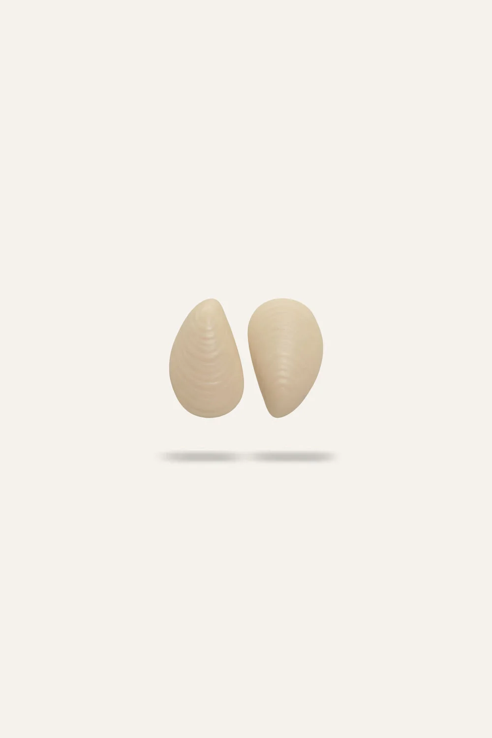 A pair of seashell-inspired stud earrings, crafted to capture the rhythmic beauty of the ocean. Their delicate design makes them a versatile accessory, transitioning effortlessly from sunlit beach days to moonlit evenings. Product Details: Closure: Post Fastening With Omega Clip Composition: 95% Metacrilato, 5% Copper Alloys Fabrication: Metacrilato & Copper Alloys Earrings Color: Antique Ecru Made in Italy Dimensions: Height 1.8'', Width 1.2''