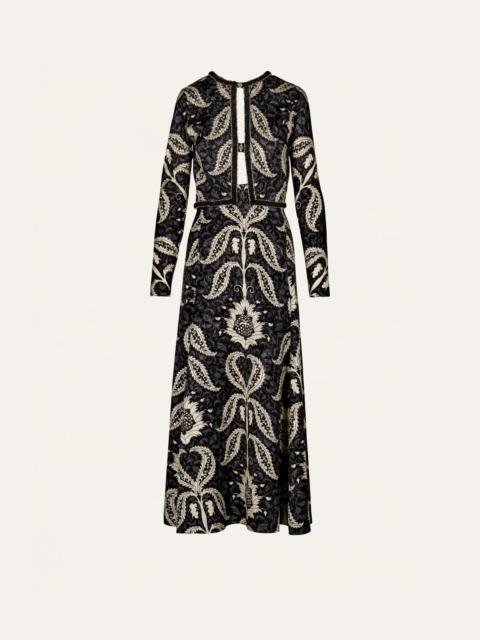 This long dress in silk double georgette features sculptural ruching across the front and shoulders, bringing subtle volume and dimension. Designed with long sleeves and a flared skirt, it offers a refined silhouette. Style with boots or heels for a streamlined look. Size and Fit: True to size. Designed for a relaxed fit. Please refer to our size chart for detailed guidance. Product Details: Closure: Hook And Eye Composition: 94% Viscose, 6% Elastane Fabrication: Jersey Color: Chocolate Made in Colombia Dimensions: Length 37.40''