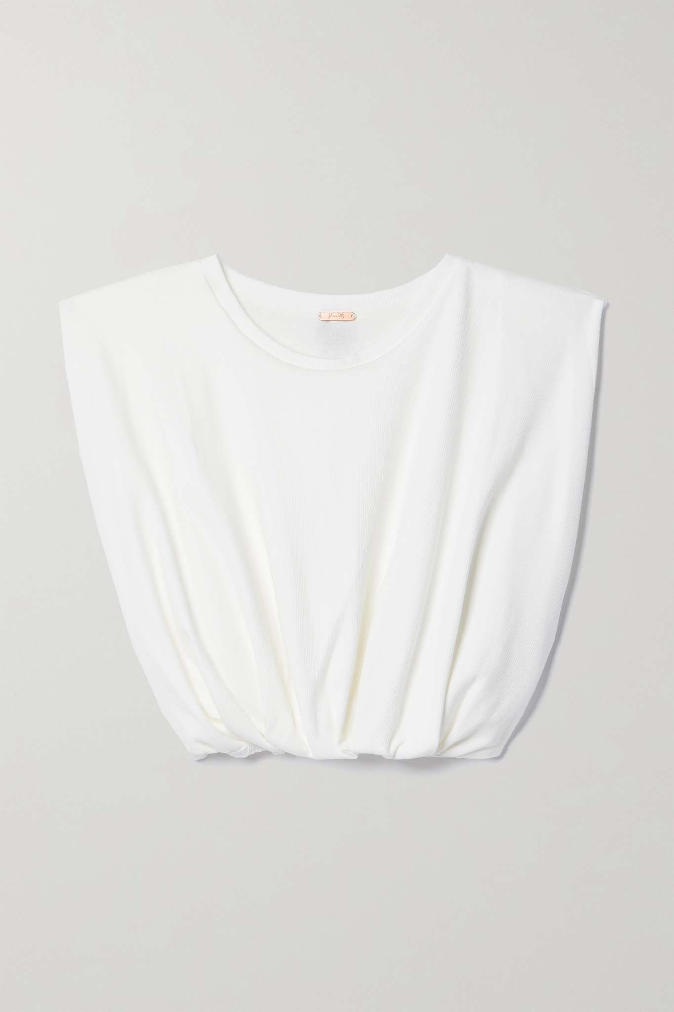EDITORS'NOTES Johanna Ortiz's 'Machakos' top turns to reveal the silhouette of a palm tree embroidered at the nape - the symbol speaks to the brand's Colombian roots, where the designer lives and produces her designs. It's been locally made from ribbed jersey using traditional techniques and gathered along the elasticated, cropped hem. This product was Locally Made and supports Craft and Community. Find out more about NET SUSTAIN here. SIZE & FIT - Fits true to size, take your normal size - Designed for a slightly loose fit - Cropped length - Elasticated at the waist for a flexible fit - Lightweight, stretchy fabric - Model is 177cm/ 5’10” and is wearing a size Small DETAILS & CARE - White jersey - Slips on - 96% viscose, 3% elastane - Machine wash