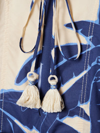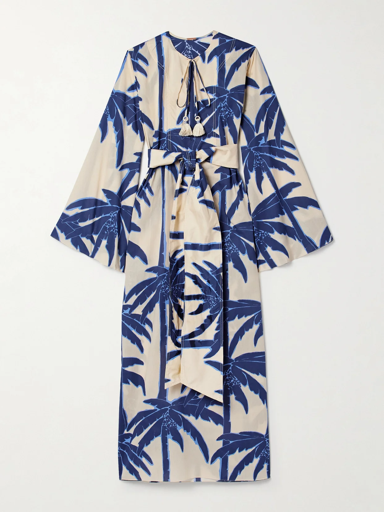 Johanna Ortiz is committed to supporting her hometown community in Cali, Colombia - the designer even founded an on-site school to teach free couture seamstress skills. This palm tree-printed 'Sotaviento' dress is cut in a billowy shape from cotton-voile and has a self-tie belt to define your waist. Responsible Craftsmanship. This product promotes artisanal skills and a brand that invests in communities and adheres to fair-trade principles. Find out more about our NET SUSTAIN criteria here.