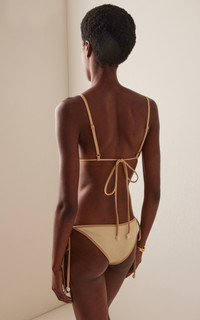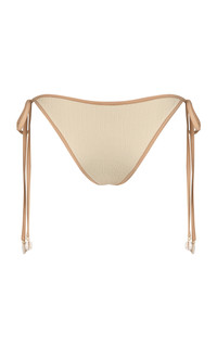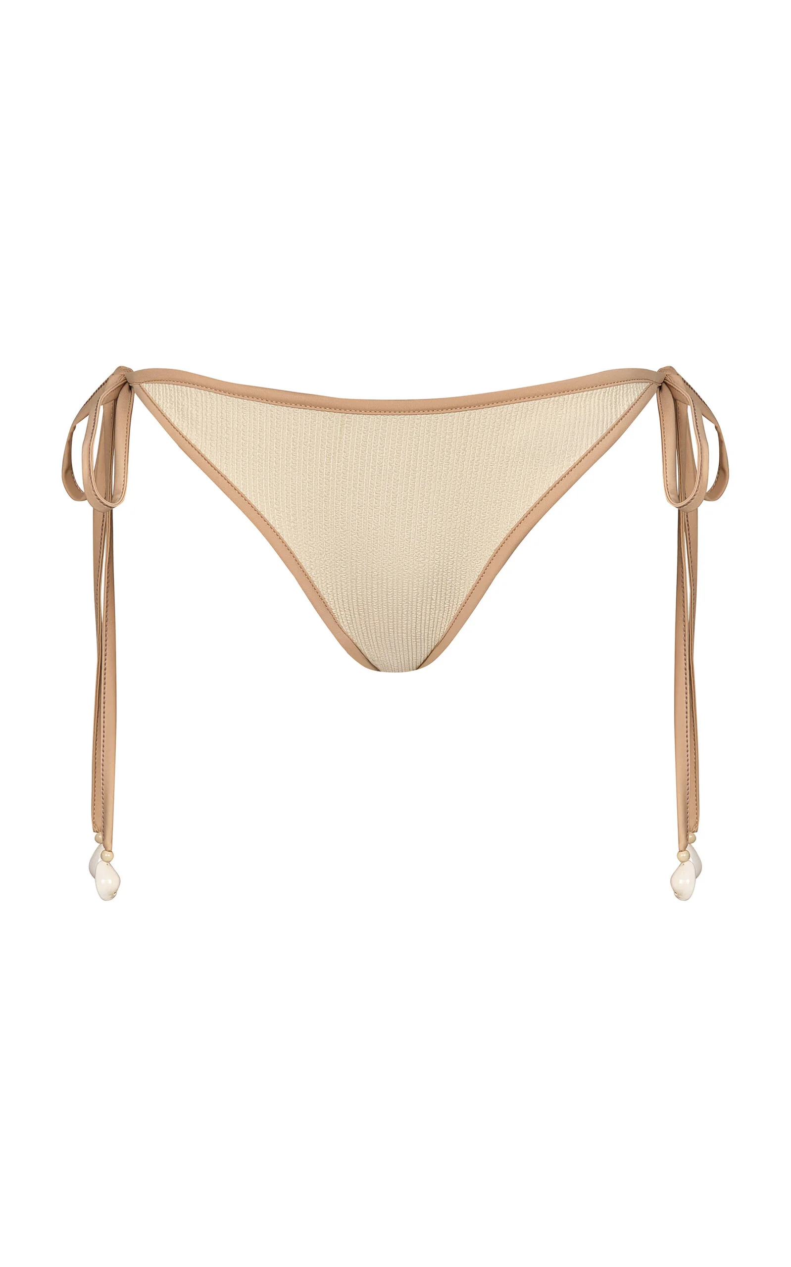 A sense of free-flowing abundance defines the Resort lineup from the Colombian designer, who calls the color palette for this collection “warm, moody, and unforgettable.” Spiritual Retreat is a crinkled bikini bottom framed by bold contrast trim. Designed with adjustable tie fastenings for a customizable fit. Pair it with the matching bikini top for a cohesive swimwear look. PRODUCT DETAILS - Resort '26 - Tie fastening - Composition: 88% polyamide, 12% elastane - Designer color: Ecru/ Nude - Hand wash - Made in Colombia SIZE & FIT - Our model is wearing a size Small - Model is 5'11" with a 30" bust, 24" waist, and 24" hip