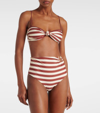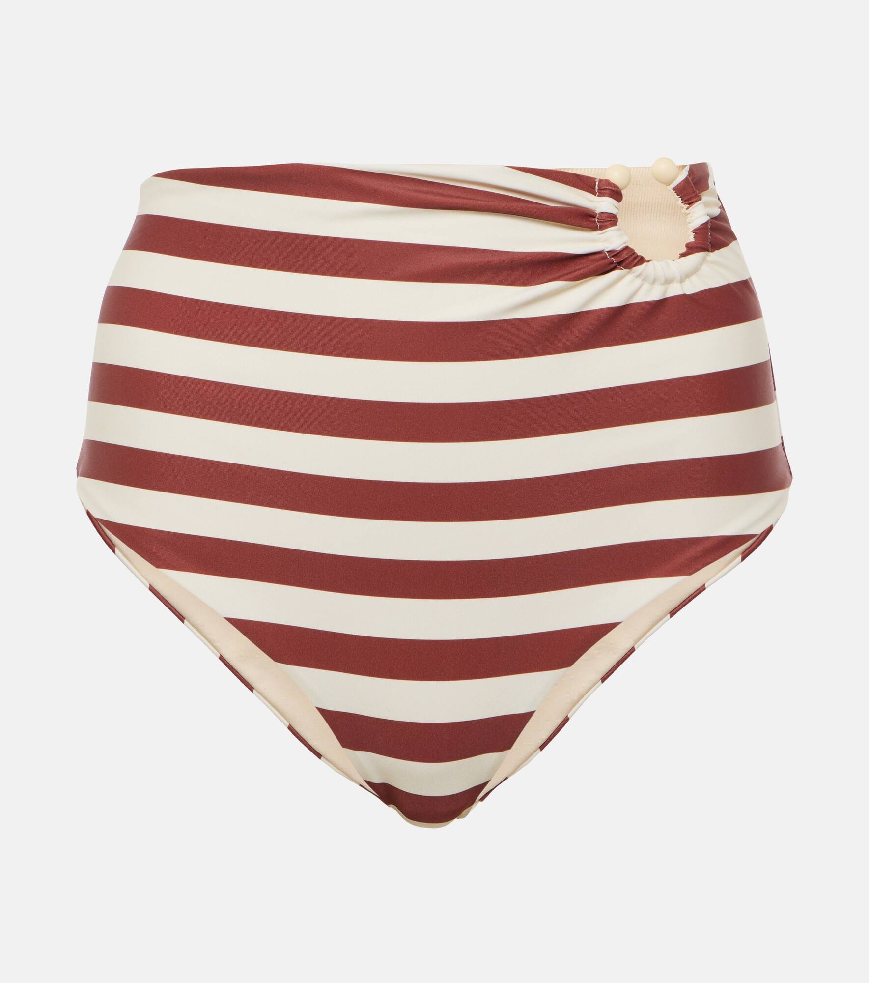 Striped high-rise bikini bottoms