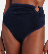 The Susurro Del Agua bikini bottoms from Johanna Ortiz provide a stylish and practical option for warm-weather looks. Made with a beaded ring detail, this high-rise silhouette is the perfect solution to mix-and-match ensembles. Product Details - Material: 100% cotton - Care instructions: dry clean - Made in Colombia - Designer color name: Navy - Item color: blue - Lining: 80% polyester, 20% elastane - Includes: dust bag - Item number: P01117387 Size & Fit - True to size - High-waisted - Medium-cut leg - The model seen in the picture is 178cm-5'10" and wearing a size XS